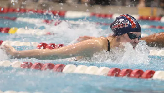 The Lady Flames opened up the evening program by placing second in the 200 medley relay, posting a program-record 1:43.75. Brye Ravettine led off in a Liberty-record 25.44, and was followed in the relay by Erin Curry, Marley Cripe and Cori Gary.