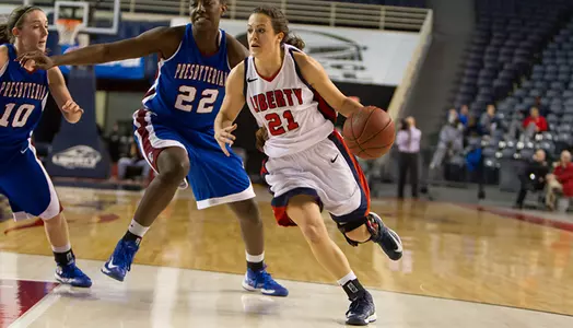 Presbyterian College shot 52 percent (13-of-25) during the second half to finish the game at 44.7 percent (21-of-47). Liberty closed the night at a season-low 28.1 percent (16-of-57) from the field and only 57.1 percent (12-of-21) from the foul line.