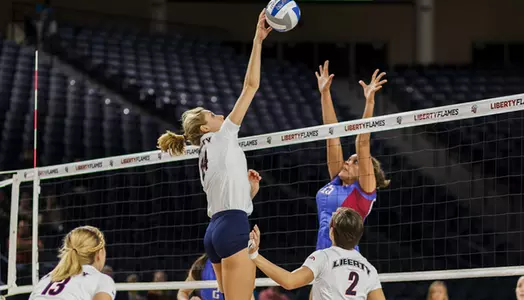 Freshman Sirena Vorster scored a match-high nine kills to go along with three blocks for Liberty. Junior Jade Vorster totaled eight kills and three blocks (two solo, one assisted). With 26 solo blocks this season, Jade Vorster has broken the previous single-season rally-scoring program record of 25, set by Loren Thomas in 2011.