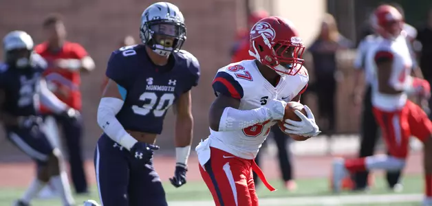 Monmouth thrilled its Homecoming crowd, scoring on its fourth-straight drive of the game, when Zokouri recorded his third multiple rushing touchdown game of his rookie season. The freshman scored from 35 yards out to push the home team's lead to 28-13 with 11:32 left before halftime.