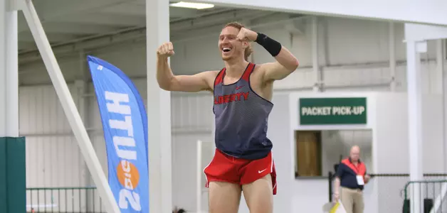 Liberty senior Carson Waters (men's pole vault) and redshirt sophomore Jovaine Atkinson (men's 60 hurdles) captured their respective event titles on Saturday, the second and final day of competition at the Keydet Invitational. Additionally, Lady Flame senior Dasiana Larson posted an ECAC qualifier in the women's shot put during the second meet ever contested at VMI's Corps Physical Training Facility
