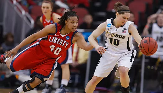 The Boilermakers held Liberty to one made field goal during the final eight minutes of the half and took a 33-17 lead into the intermission when April Wilson's three-pointer connected at the halftime buzzer.