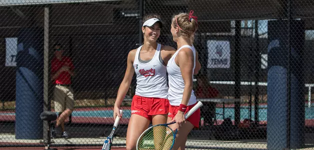 Following Crist and Dollar's victory, Maria Medina and Lara Soares of Liberty battled back from a 5-4 deficit to Jamie Breunig and Yulia Almiro. The Lady Flames' duo took the next three games to claim the match, 7-5, for the doubles sweep. Medina and Soares are now 5-1 in conference competition, this spring.