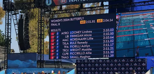 On Friday, Finnigan wrapped up her live participation at Nationals with a 1:00.61 in the 100-meter butterfly, taking 40th place overall. The senior entered the event with the 54th seed, and missed matching her lifetime-best of 1:00.59 by just two-tenths of a second.