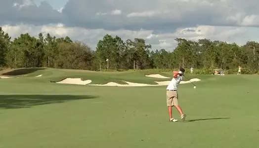 After starting on the par 4 No. 11 hole, Marinell's first hole won came in a peculiar fashion. The reigning Big South Freshman of the Year pulled his tee shot left and placed it on the bank on the small lake. Having to take his shoes and socks off to stand in the water for his next stroke, Marinell was eventually able to savage a bogey. Nagy looked like he might win the hole, but his approach shot went off the back of the green into a swale and he carded a double bogey.