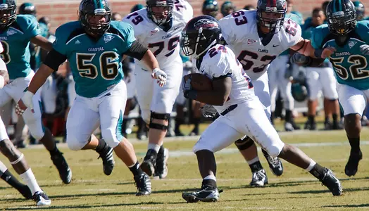 Today's recap includes audio highlights from Rocco with the Flames Sports Network radio postgame coverage. The Flames had their five-game winning streak snapped in a 45-31 road loss at Coastal Carolina on Saturday at Brooks Stadium.