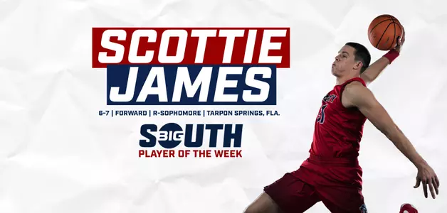 Liberty redshirt sophomore forward Scottie James has been named the Big South Player of the Week for the week of Jan. 29-Feb. 4.