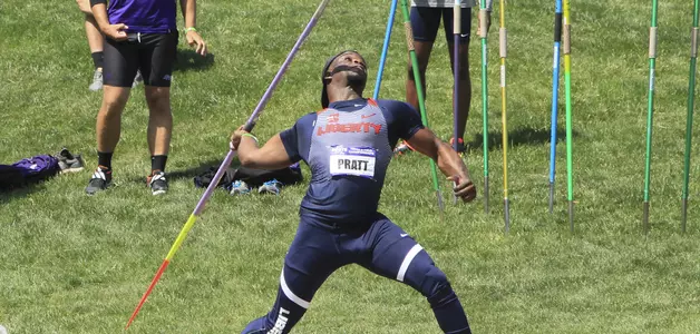 Liberty's number of NCAA national qualifiers grew by three on an action-packed and soggy final day of the 2018 NCAA Division I East Preliminary Round meet at USF Track & Field Stadium. Senior Darrel Jones (men's triple jump), senior Dasiana Larson (women's hammer) and junior Denzel Pratt (men's javelin) each punched their first-ever Eugene tickets on Saturday in their third career visit to the NCAA Preliminary Round meet.