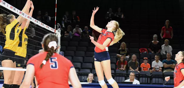 Liberty downed Kennesaw State in a spirited first set before the defending ASUN champion Owls took the next three sets to win 3-1 (25-27, 25-14, 25-14, 25-22), Sunday at the Vines Center.