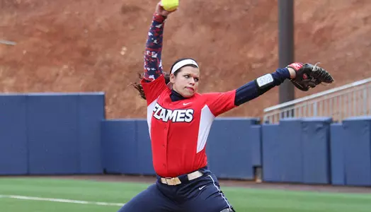 Ball (10-5) tied her career high for victories, pitching her third shutout of the season. She allowed just four hits while striking out five and walking one. Ball is the first Lady Flame since Tiffani Smith in 2011 to toss three shutouts in a season.