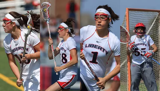 Four members of the Liberty lacrosse team were named to the Big South Conference Lacrosse All-Conference teams on Thursday evening at the conference's year-end awards banquet on the campus of Davidson. Jen Freymond was tabbed first team all-conference, while Chloe McIntosh, Nina Dunay and Kristen Masullo were each named to the second team for the Lady Flames.