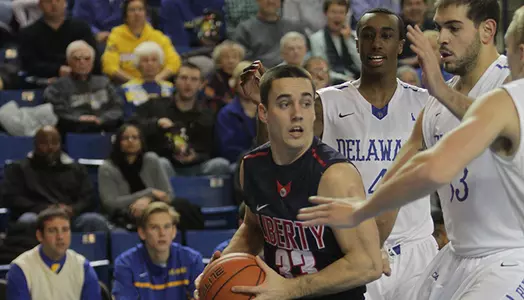 The Liberty men's basketball team attempted to ring in the new year with a win, Wednesday afternoon, at Delaware's Bob Carpenter Center. After the Flames held the Blue Hens, who entered contest averaging over 81 points per game, to just 25 in the first half, Delaware responded with a second half surge to take the contest, 77-64.