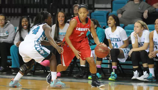 Liberty (8-8, 5-2 Big South) will begin a two-game road swing at Coastal Carolina (7-9, 2-5 Big South), Tuesday at 7 p.m. inside The HTC Center. Both teams enter their 62nd all-time meeting coming off of impressive victories on Saturday.
