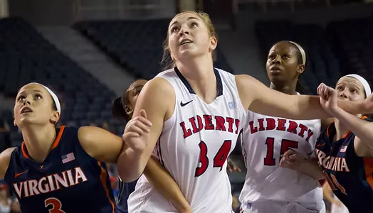 Liberty's redshirt sophomore trio of Ashley Rininger (27 points, 11 rebounds), Katelyn Adams (14 points, 10 rebounds) and Catherine Kearney (10 points, 13 rebounds) all recorded double-doubles on Thursday at Charleston Southern. It was the first time three Lady Flames had posted double-doubles in the same game since Feb. 4, 1986, when Harriett Blair, Sharon Freet and Malynda Keck did so against Randolph-Macon.